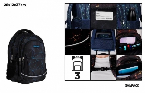 Plecak geometryczny trzykomorowy czarny 28x12x37cm
