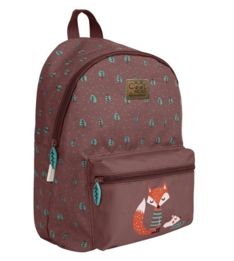 Odkryj plecak dziecięcy Perletti z kolekcji Cool Kids, o wymiarach 36 x 25 x 15 cm, który doskonale sprawdzi się zarówno w szkole, jak i podczas codziennych przygód. Ten uroczy plecak wyróżnia się wyjątkowym wzorem z lisem i jeżem na brązowym tle, ozdobionym delikatnymi, niebieskimi motywami liści, co nadaje mu przyjazny i kolorowy charakter, który zachwyci każde dziecko.