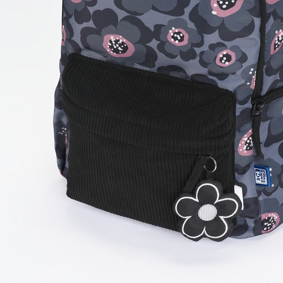 Plecak Oxford Bloom to połączenie stylu i ekologicznej świadomości. Wykonany z trwałego poliestru pochodzącego z recyklingu, jest idealnym wyborem dla osób dbających o środowisko. Jego wyjątkowy, kwiatowy wzór dodaje uroku i sprawia, że plecak wyróżnia się na tle klasycznych modeli – to doskonała propozycja zarówno do szkoły, na uczelnię, jak i na codzienne wyjścia. Plecak Oxford Bloom posiada dużą, funkcjonalną komorę główną, która pomieści książki, zeszyty i inne niezbędne przedmioty. Na przodzie znajduje się stylowa kieszeń z miękkiego sztruksu, idealna na drobiazgi, które chcesz mieć zawsze pod ręką. Praktyczny, wygodny i z charakterem – Oxford Bloom to plecak, który sprosta wszystkim Twoim wymaganiom!