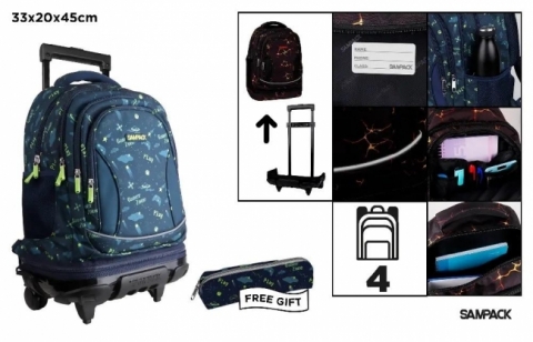 Plecak ze stelażem i kółkami 4 komory + piórnik
