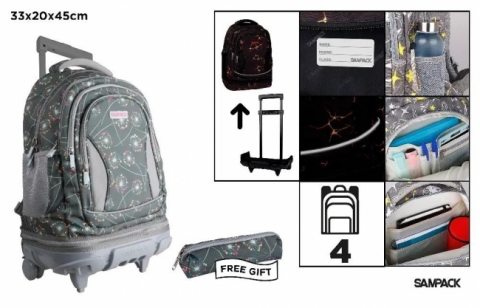 Plecak ze stelażem i kółkami 4 komory + piórnik