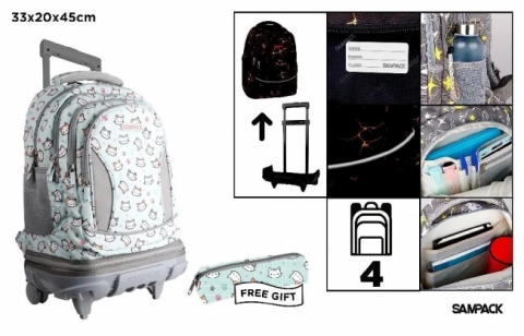 Plecak ze stelażem i kółkami 4 komory + piórnik