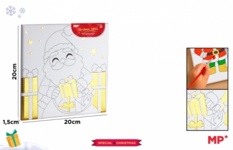 Wymiary całkowite: 20x20 cm, grubość 1,5 cm. Rama z drewna sosnowego, 100% płótno bawełniane, 280 gr/m2. Łatwa do kolorowania powierzchnia z przyjazną dla środowiska powłoką.
