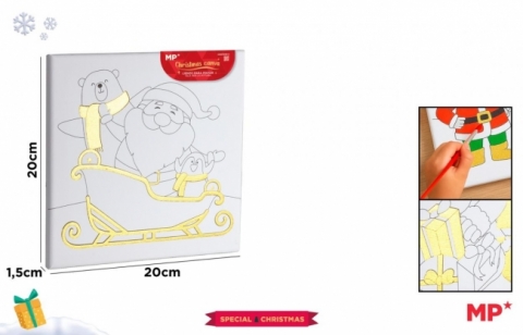 Wymiary całkowite: 20x20 cm, grubość 1,5cm. Rama z drewna sosnowego, 100% płótno bawełniane, 280 gr/m2. Łatwa do kolorowania powierzchnia z przyjazną dla środowiska powłoką.
