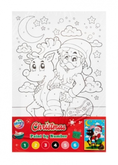 Wprowadź świąteczną atmosferę do swojego domu dzięki zestawowi malowania po numerach na płótnie A4. Obrazek przedstawia wesoły, bożonarodzeniowy motyw Mikołaja z reniferem. Płótno podzielone jest na pola oznaczone numerami, które odpowiadają konkretnym kolorom farb, dzięki czemu malowanie jest proste i daje piękne efekty nawet początkującym artystom.