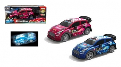 Samochód rajdowy sterowany pilotem z podświetleniem. Auto jedzie do przodu, do tyłu, skręca w prawo i w lewo. Produkt działa na baterie AG13 (załączone) oraz AA (niezałączone). Produkt występuje w kilku wersjach kolorystycznych, wybierany losowo. Cena dotyczy jednej sztuki. Zabawka przeznaczona dla dzieci od lat 3. Produkt zapakowany w kartonowe pudełko. Wymiary opakowania są wymiarami pudełka.