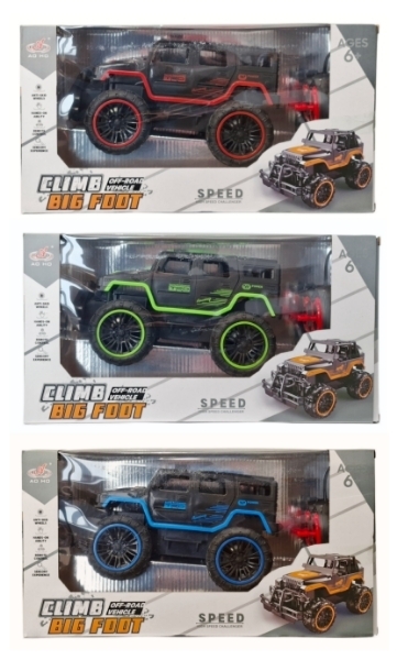 Samochód terenowy sterowany pilotem. Auto wspina się po różnej powierzchni i posiada koła antypoślizgowe. Auto działa na baterie AA (niezałączone) oraz Ni-Cd (załączone). Produkt występuje w kilku wersjach kolorystycznych, wybierany losowo. Cena dotyczy jednej sztuki. Zabawka przeznaczona dla dzieci od lat 6. Produkt zapakowany w kartonowe pudełko. Podane wymiary są wymiarami opakowania.