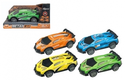 Model sportowego auta wykonany z tworzywa z elementami metalowymi. Posiada napęd frykcyjny – wystarczy popchnąć pojazd, aby samodzielnie jechał. Dynamiczny wygląd oraz różne warianty kolorystyczne sprawiają, że zabawka przyciąga uwagę i zapewnia ciekawą zabawę. Produkt występuje w kilku wersjach kolorystycznych, wybierany losowo. Cena dotyczy jednej sztuki. Zabawka przeznaczona dla dzieci od 3 lat. Produkt zapakowany w kartonowe opakowanie. Podane wymiary są wymiarami opakowania.