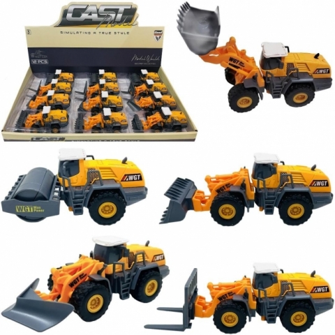 Realistyczny Design: Maszyny w kolorystyce żółto-czarnej z pomarańczowymi ramionami roboczymi odwzorowują prawdziwe pojazdy budowlane. Oznaczenia "WGT" i "Max Power" dodają autentyczności.