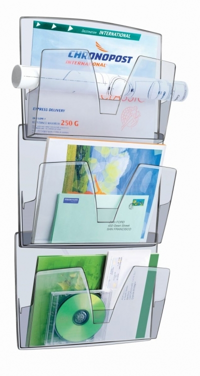 - zestaw półek przeznaczony na dokumenty w formacie A4, wykonany z odpornego na pęknięcia i odkształcenia polistyrenu