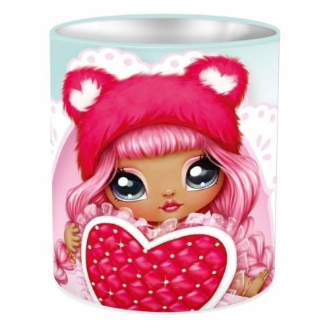 Metalowy pojemnik na przybory szkolne. Wymiary: 10x11 cm.