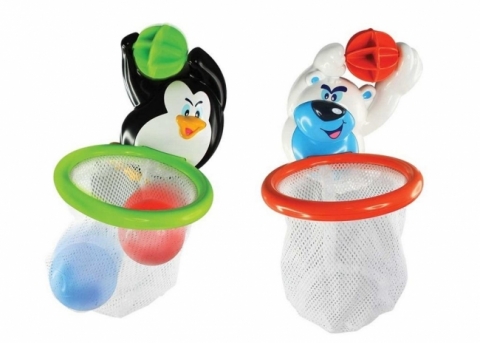 Zamień wannę w boisko do gry w koszykówkę, sprawiając maluchowi mnóstwo radości! Polarne zwierzątko posiada z tyłu pomysłowe przyssawki, za sprawą których bez trudu przymocujesz zabawkę do kafelek lub ściany wanny. W zestawie poza polarnym zwierzakiem wyposażonym w obręcz z siatką i obrotowy element, znajdziemy także 3 kolorowe piłki do trenowania rzutów. Zabawka występuje w dwóch wzorach do wyboru: pingwinek lub miś polarny