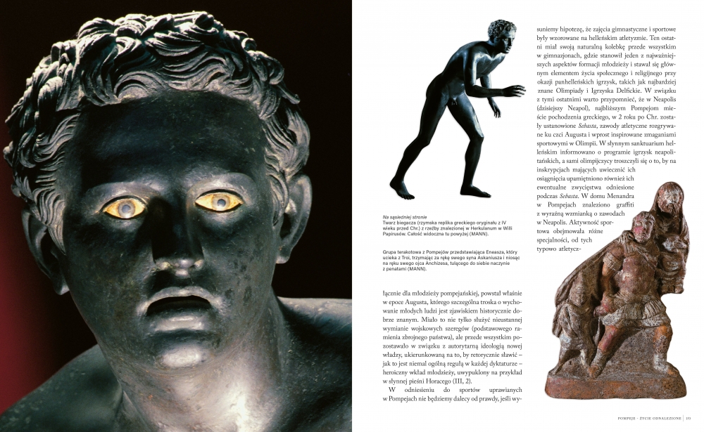 Właśnie wtedy wybuch Wezuwiusza pogrzebał na wieki to starożytne miasto. Pompeje są z pewnością najbardziej znanym w świecie stanowiskiem archeologicznym, co każdego dnia potwierdzają tłumy zwiedzających. Ten powszechny rozgłos zyskały praktycznie już w momencie ich odkrycia dwa i pół wieku temu. Niniejszy album opiera się na najnowszych badaniach, które próbują osadzić Pompeje w jak najszerszym kontekście Italii rzymskiej, a więc zrozumieć rzeczywistą rolę i znaczenie tego miasta. Autorzy tego pięknego albumu z całą mocą podkreślają, że przeszłość jest interesująca przede wszystkim dlatego, że jest „różna” od teraźniejszości, pozwala zrekonstruować coś odległego w czasie, innego, a zatem stworzyć perspektywę historyczną zwróconą nie tylko ku temu, co minione, lecz przede wszystkim ku przyszłości.