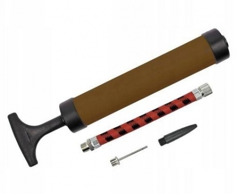 Pompka ręczna w zestawie z wężykiem i 2 końcówkami do pompowania piłek, materaców, dętek i innych akcesoriów. Świetnie sprawdzi się podczas campingów, biwaków czy wycieczek rowerowych.