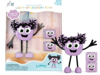 Glo Pals, Zestaw postać Lumi oraz 2 kostki sensoryczne świecące w wodzie, w kolorze fioletowym.