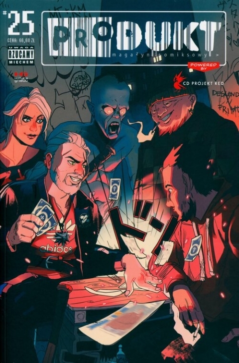 Kilka słów od Michała „Śledzia” Śledzińskiego, red nacza „Produktu”:Mamy Wiedźmina w domu! Znaczy... Na Osiedlu Swoboda. Pięknie nam Błażej Qrjusz Kurowski tę okładkę przygotował, prawda?To nasz okładkowy główny wariant, kontynuujący pomysł maszapu CD PROJEKT RED x PRODUKT. Redzi, oczywiście, ponownie wspierają nas w procesie produkcji (dzię-ku-je-my!). Wariantów okładki znów mamy cztery, tym razem bez blanka. Na kolejnych, równie cudownych, znajdziecie prace Joanna Karpowicz, xuh, javvie.A z Geraltem (Panie Andrzeju, dziękujemy, bo wszystkie Wiedźminy nasze są, jak śpiewała Majka Jeżowska) spotkacie się i na naszych kolorowych stronach (mamy ich 44 w #25) w bardzo produktowej odsłonie serii, zmajstrowanej przez Bartosza Sztybora (laureata Nagrody Hugo), Piotra Nowackiego (laureata Nagrody Białego Kurczaka) i mnie (laureata Nagrody im. Papcia Chmiela). Będzie jajo! Tak, serio – jajo.A to tylko jedna z wielu komiksowych atrakcji, które na Was czekają podczas lektury 190 stron nowego numeru. Będzie sporo śmiechu, wzruszeń, debiut poza niezalem, szeroko otwartych oczu, gościnnych występów i doskonałej publicystyki z hologramem jakości All Comics Are Beautiful ACAB News 24.