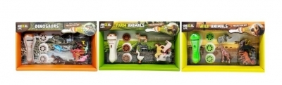 Zestaw projektorów z różnymi zwierzętami lub dinozaurami, zawiera trzy dyski projektora i 24 różne slajdy. Dostępny w motywach farmy, dinozaura i dzikiego zwierzęcia i jest różnorodny. Odpowiedni dla dzieci w wieku od 3 lat.