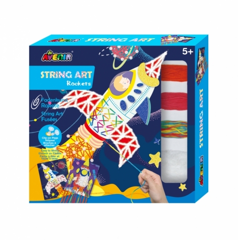 Przeplatanka to zabawka, która rozwija motorykę małą ręki, a także doskonale pobudza kreatywność. Ozdób z dzieckiem własną rakietę, ćwiczcie wspólnie małą rączkę! W zestawie znajdziecie szablon z perforowanej kolorowej tektury. Dziecko najpierw musi wbić plastikowe nity w odpowiednie miejsca i następnie oplatać nity muliną, tworząc dekorację.