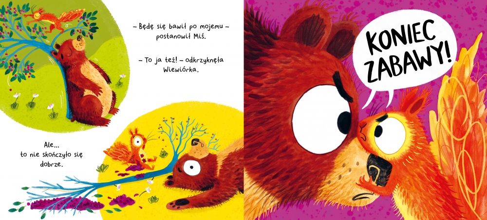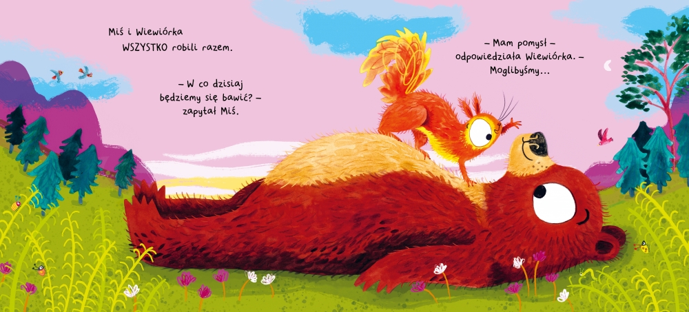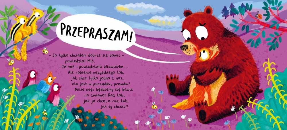 - Na końcu rozkładówka edukacyjna równie lekko i zabawnie mówi o tym, że można bardzo się lubić nawzajem, ale jednocześnie lubić różne rzeczy. Miś i Wiewiórka pokazują i radzą, jak wyrażać swoje uczucia, żeby lepiej się porozumieć i lepiej się poczuć.