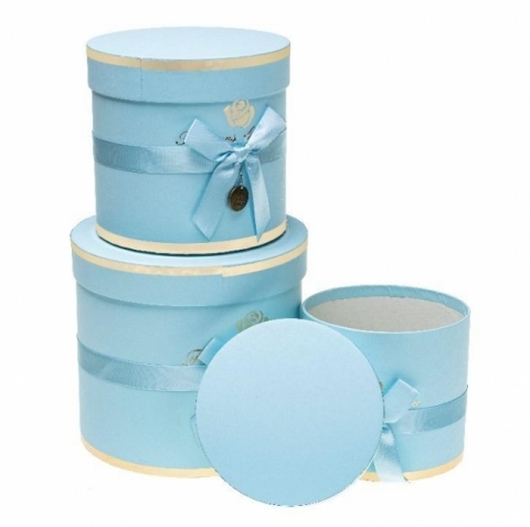 Pudełko Flower Box z kokardą 3szt niebiesk ROZETTE