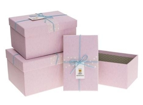 Pudełko prostokątne z kokardą 3szt różowy ROZETTE