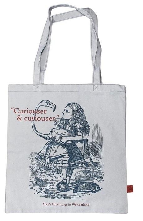 Motyw graficzny: Torba ozdobiona jest ilustracją z książki "Alicja w Krainie Czarów" autorstwa Lewisa Carrolla, przedstawiającą scenę z Pulteney Press.