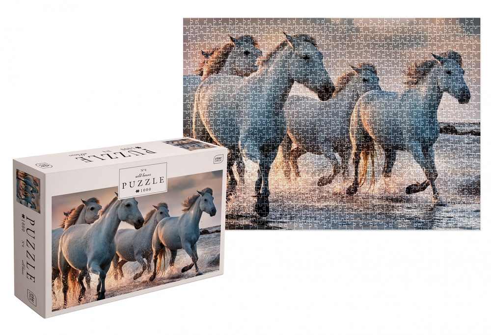 - Puzzle 1000 elementów, w solidnym i trwałym pudełku do przechowywania.