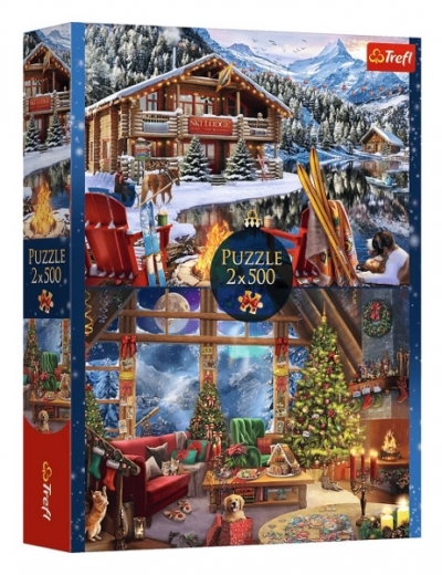 Święta w górach to puzzle przedstawiające górski krajobraz zimową porą oraz klimatyczną drewnianą chatę świątecznie udekorowaną. Każda z układanek pozwoli stworzyć obrazek o wymiarach 480x340 mm.