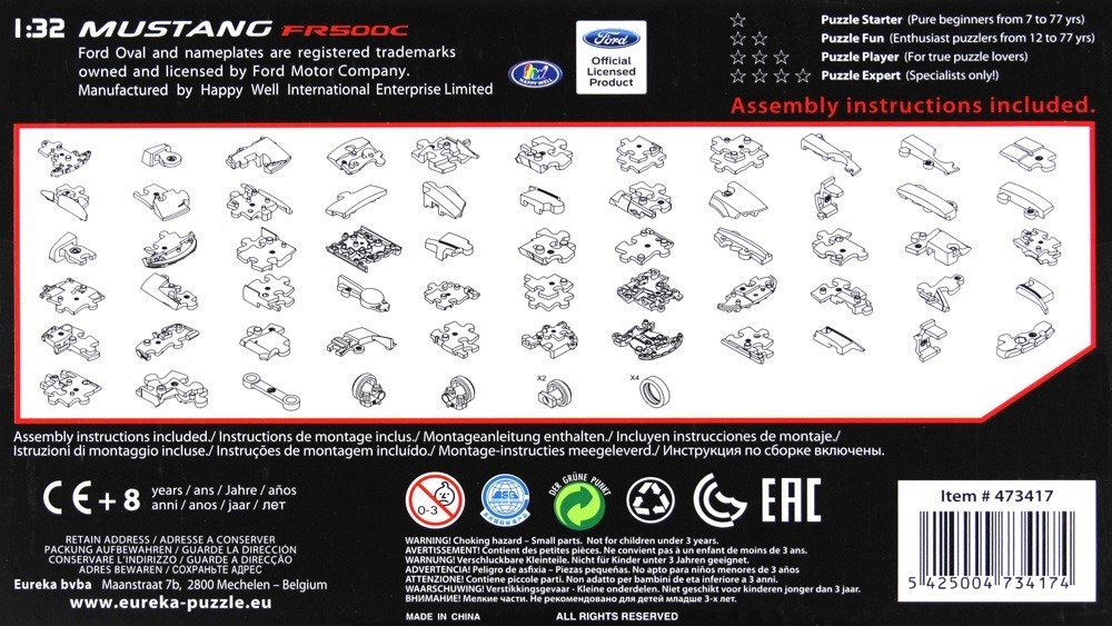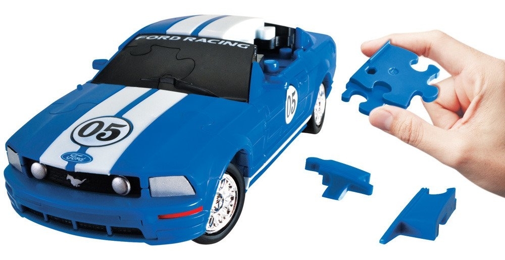 Ford Mustang z serii 3D Cars to 66 plastikowych puzzli. Twoim zadaniem jest złożenie trójwymiarowego modelu samochodu w skali 1:32. Okazuje się, że pozornie prosta czynność, w tych okolicznościach staje się nie lada wyzwaniem.