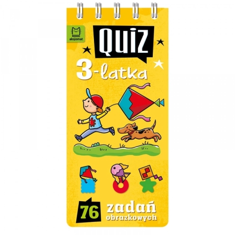 Quiz 3-latka to zestaw obrazkowych zadań dla bystrych dzieci, w którym znajduje się 76 obrazkowych zadań. Taki test to doskonałe narzędzie sprawdzenia wiedzy najmłodszych oraz sposób na edukacyjną zabawę. Książeczka sprawdzi się na spacerze – do korzystania przez dziecko w wózku – w podróży, a przede wszystkim do pracy w domu. Sprawdź wiedzę swojego dziecka i zapewnij mu kształcącą zabawę!
