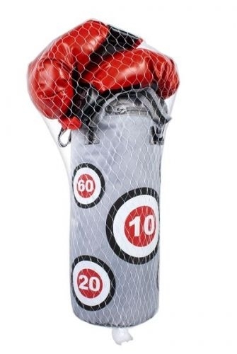 W zestawie znajdują się: worek treningowy oraz dwie rękawice