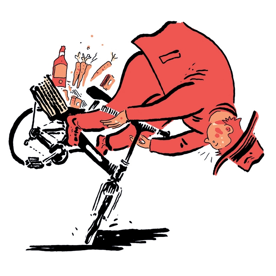 Poznacie jego budowę i historię, poczynając od drewnianej maszyny biegowej, przez bicykl z ogromnym przednim kołem, po dzisiejsze holendry, BMX-y, rowery górskie i szosowe. Dowiecie się, kto wynalazł przerzutki i opony. Przeczytacie o tym, jak jazda na rowerze wpływa na nasze ciało i umysł, jak działa zmysł równowagi i na jaką nawierzchnię najprzyjemniej się upada (spojler: na łóżko!). Poznacie najróżniejsze sporty rowerowe – te oficjalne, jak rozmaite wyścigi czy bike polo, oraz te bardziej szalone, na przykład… mistrzostwa w jeździe pod wiatr. Wreszcie znajdziecie tu też podstawowe przepisy i znaki drogowe, wskazówki dotyczące stroju i inne praktyczne porady (wiecie, dlaczego warto schować do buta prawą sznurówkę?).