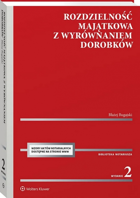 Publikacja zawiera wzory aktów notarialnych, które ułatwią sporządzenie majątkowej umowy małżeńskiej ustanawiającej rozdzielność majątkową z wyrównaniem dorobków. Są one dostępne także w wersji elektronicznej do pobrania po wpisaniu zamieszczonego w książce kodu aktywacyjnego. Wzory można modyfikować i dostosowywać do indywidualnych potrzeb.