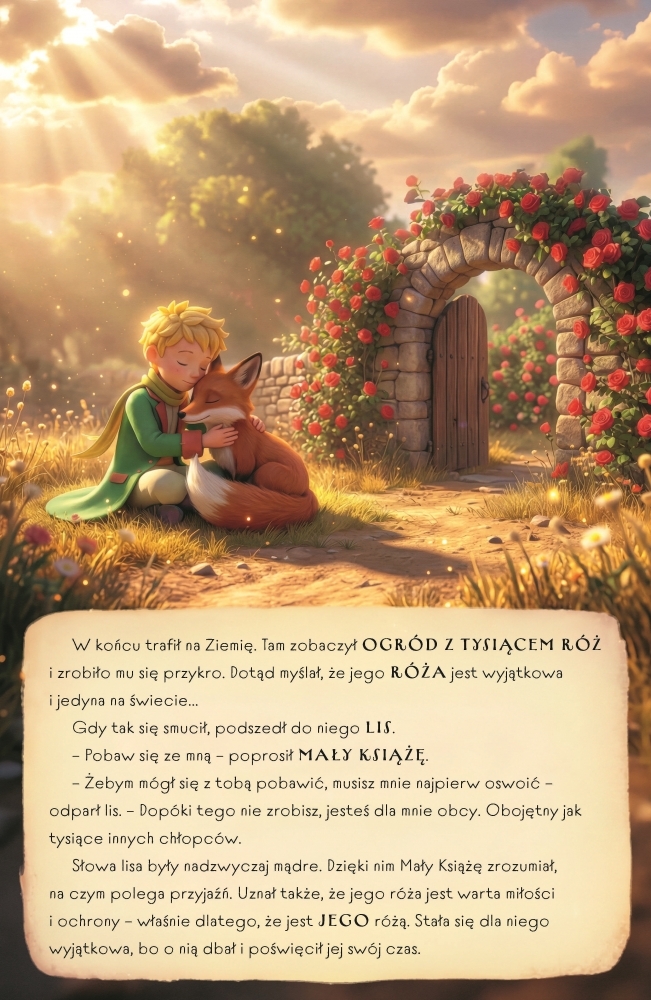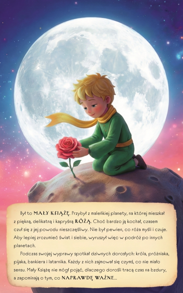 Wszyscy znają opowieść o spotkaniu pilota z niezwykłym chłopcem. Mały Książę uczy dorosłego przyjaźni, odpowiedzialności i patrzenia na świat sercem. Teraz mogą ją poznać najmłodsi czytelnicy dzięki książeczce-rozkładance. Na każdej stronie czeka na nich niespodzianka – kolorowe trójwymiarowe ilustracje z Małym Księciem.