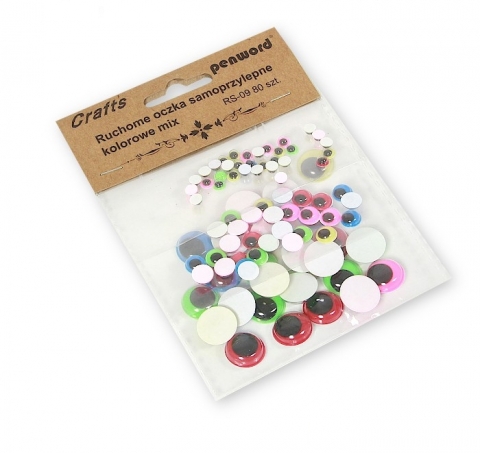 Ruchome oczka samoprzylepne kolorowe 80szt
