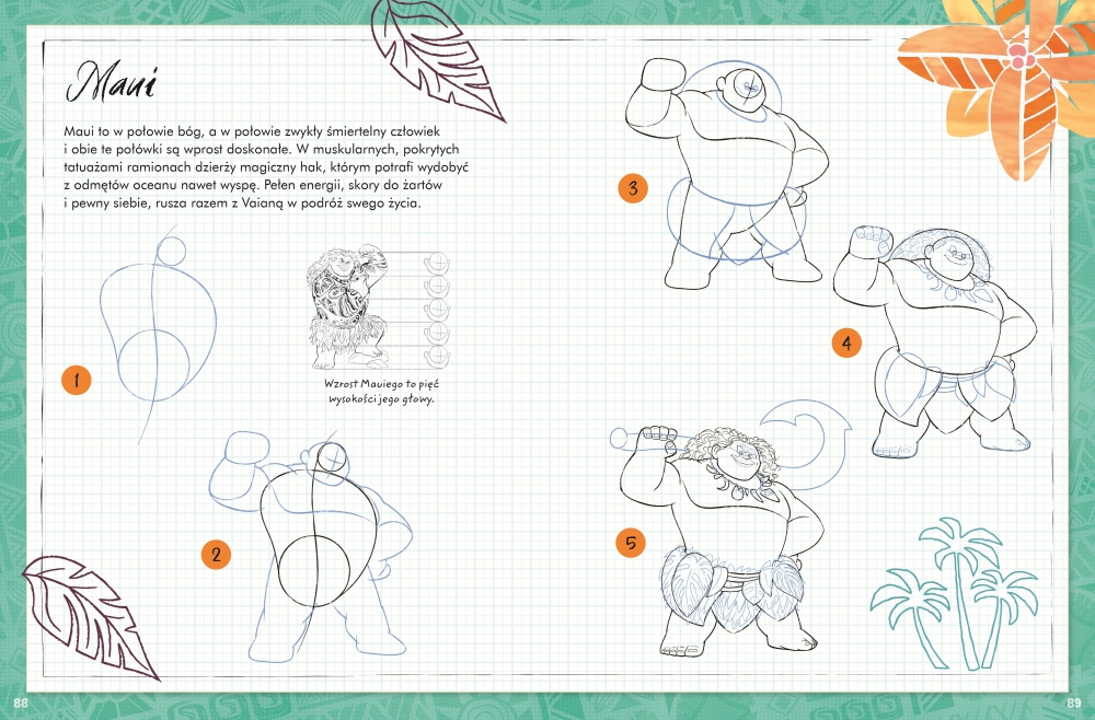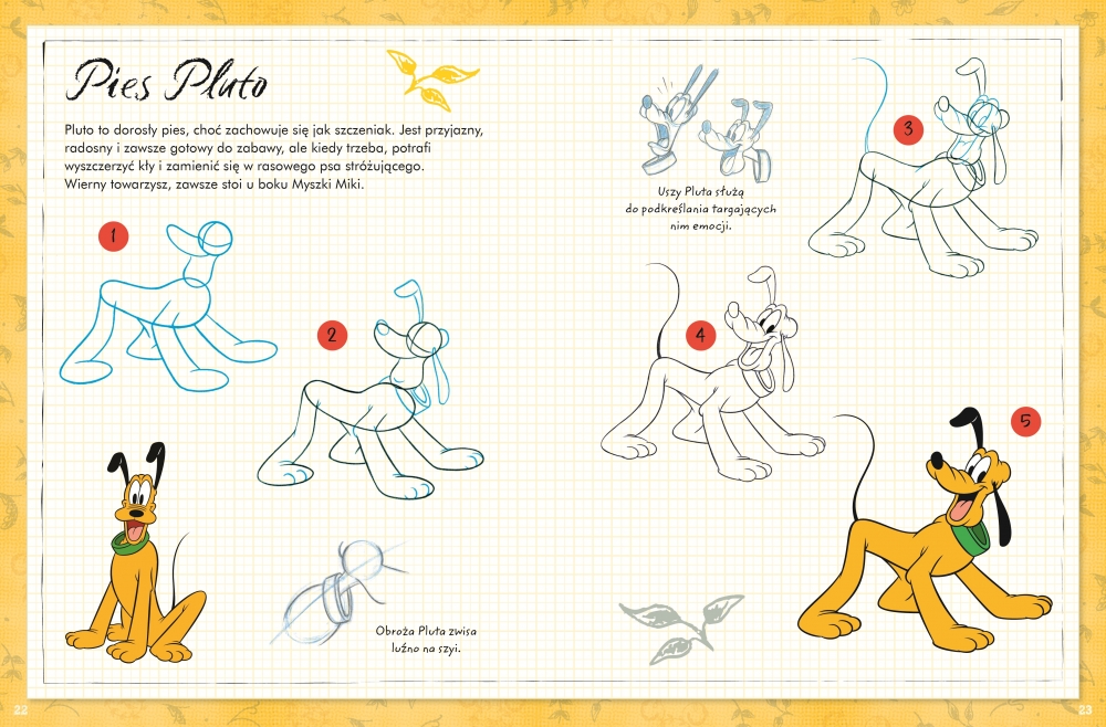 Czytelne, proste instrukcje i liczne podpowiedzi – to wszystko, czego trzeba początkującym twórcom, by nakreślić i pokolorować ponad dwudziestu bohaterów ze świata animacji Disneya.