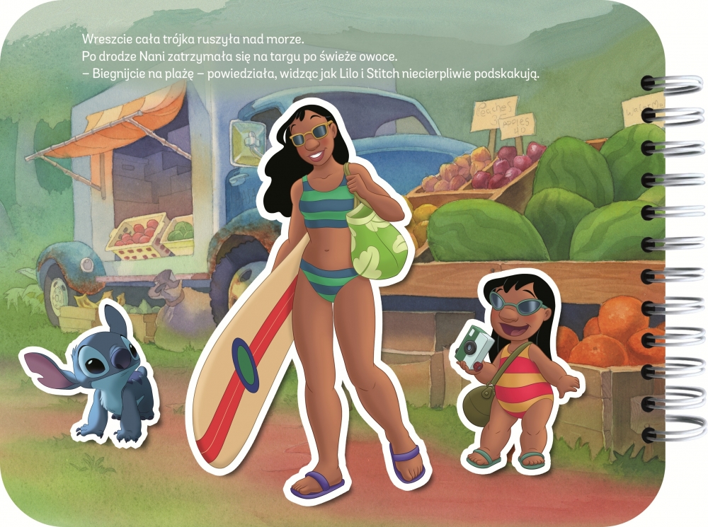 Lilo i Stitch wybierają się na plażę! Czeka ich dzień pełen słońca, śmiechu i... psot. Czytaj historyjkę i baw się rzepkami-przyczepkami: dopasuj je do odpowiednich kształtów na obrazkach, a powstaną kolorowe scenki! W serii RZEPKI-PRZYCZEPKI czytanie łączy się z zabawą, dzięki której dzieci rozwijają zręczność i spostrzegawczość.
