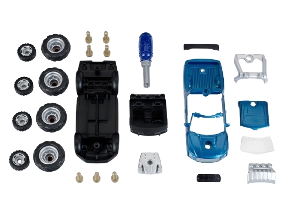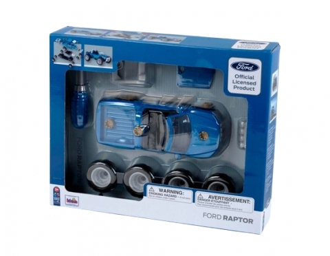 Wspaniały zestaw Ford F150 Raptor 3w1 pozwoli małemu fanowi motoryzacji na samodzielne stworzenie trzech różnych pojazdów. W skład zestawu wchodzi podwozie auta, 3 wymienne rodzaje nadwozia, a także 2 komplety kół. Dzięki dostępnym w zestawie narzędziom i elementom konstrukcyjnym mamy szansę samodzielnego montażu, aby przerobić pojazd według własnych upodobań. Zestaw uzupełnia śrubokręt, który pomoże Wam tego dokonać. Zostań z tym zestawem małym mechanikiem!!! Po prostu chwyć za wchodzący w skład zestawu śrubokręt i z dostępnych części i kół złóż swoją wersję modelu Ford F150 Raptor. Zarówno jako kabriolet w wersji klasycznej lub Monster Truck, jak i jako klasyczny pik-up lub Monster Truck — wytrwały Ford sprawdzi się w każdej sytuacji i zawsze będzie dobrze wyglądać. Dzięki posiadanej licencji Ford i staranności wykonania, produkty odwzorowane będą w wysokim stopniu z realnymi pojazdami. Dzięki wielu możliwościom złożenia tego zestawu mali fani Forda mogą popuścić wodze wyobraźni.