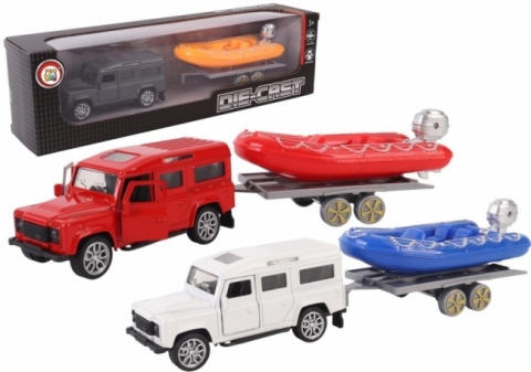 Wsiądź za kierownicę terenowego auta i rozpocznij akcję ratunkową, wodną wyprawę lub ekscytującą przygodę! Ten wyjątkowy zestaw z metalowym samochodem terenowym i realistycznym pontonem na przyczepie to idealna zabawka dla każdego młodego odkrywcy. Model samochodu typu SUV został starannie wykonany z metalu, posiada ruchome drzwi i mechanizm pull-back, który umożliwia dynamiczną jazdę bez baterii.