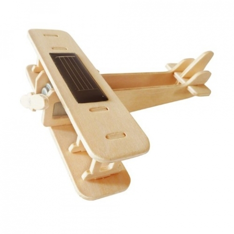 Drewniany model samolotu do samodzielnego złożenia. Śmigło obraca się dzięki silniczkowi na baterię słoneczną.Zabawka dla dzieci w wieku od 6 lat