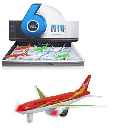 Wysokiej jakości model samolotu wykonany z metalu. Posiada napęd wsteczny (nakręcany poprzez cofnięcie). Dodatkowo wyposażony jest w świecące silniki i kokpit oraz efekty dźwiękowe startu samolotu. Cena za 1szt.