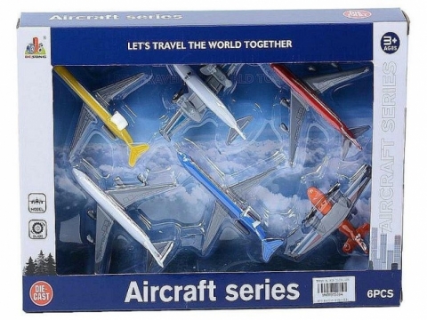 Zestaw 6 samolotów metalowych, pasażerskie; 30x20,5x4,5cm, W/B