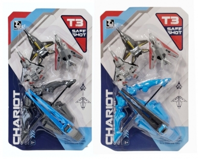 Zestaw samolotów i akcesoriów lotniczych. W komplecie znajdują się różne modele myśliwców oraz wyrzutnia. Dostępne różne warianty kolorystyczne, kolor wybierany losowo. Cena dotyczy jednej sztuki. Zabawka przeznaczona dla dzieci od lat 3. Produkt zapakowany w kartonową podstawkę z przezroczystym kloszem. Podane wymiary są wymiarami produktu w opakowaniu.