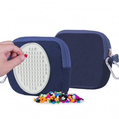 Praktyczna kosmetyczka na suwak PIXIE CREW niebieska, z kreatywnym panelem świecącym w ciemności, na którym można tworzyć oryginalne i spersonalizowane grafiki, za pomocą małych silikonowych pikseli. Wykonana z wytrzymałego neoprenu. Zapinana jest na suwak. Wewnątrz znajduje się wystarczająco dużo miejsca na różne małe rzeczy. Sprzedawana jest z dodatkowym darmowym zestawem około 69 pikseli.