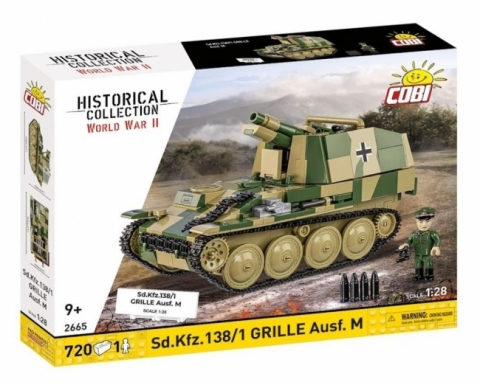 Model COBI Grille Ausf. M to wierne odwzorowanie niemieckiego działa samobieżnego w skali 1:28, wykonane z najwyższej jakości klocków, które łączą się precyzyjnie i trwale.