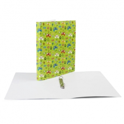 Segregator wykonany z sztywnego tworzywa PP z ozdobnym kolorowym nadrukiem W środku po lewej stronie okładki przezroczysta trójkątna kieszeń Idealny do przechowywania różnych dokumentów lub rysunków Grzbiet o grubości 2cm i okładki usztywnione tekturą Idealny do przechowywania dokumentów Posiada zaokrąglone krawędzie Dwuringowy pierścień typu D Wzór: pady