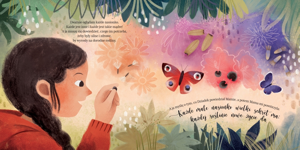Przepięknie ilustrowana Amberkowa ogródkowo-przyrodnicza nowość dla miłośników Najpiękniejszego ogródka Borsuka. Sekret małego nasionka poza piękną formą i ciepłą, zabawną opowieścią niesie bogate treści edukacyjne.