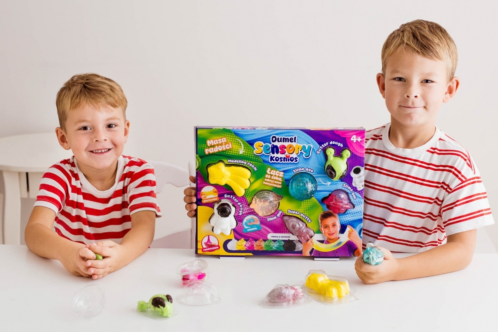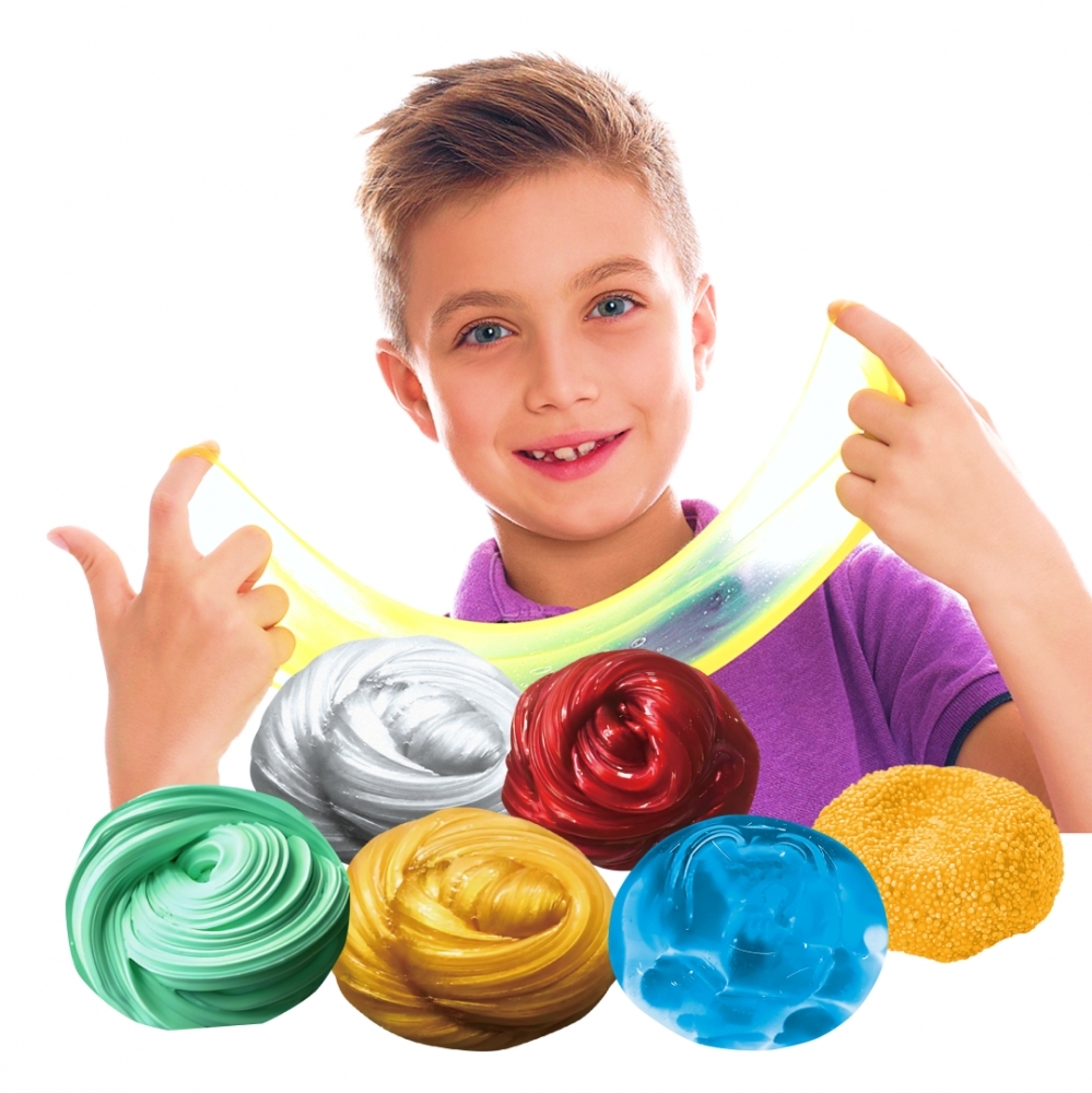- w zestawie 7 mas w 4 konsystencjach, różniących się kolorem (2 x butter dough, 1 x modeling foam, 1 x super putty, 3 x slime goo) oraz 3 woreczki strunowe od przechowywania masy;
