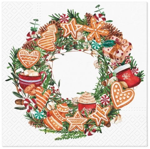 Serwetki 33x33cm Gingerbread Wreath, 3-warstwowe, 20 szt. w opakowaniu.