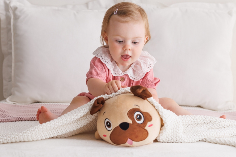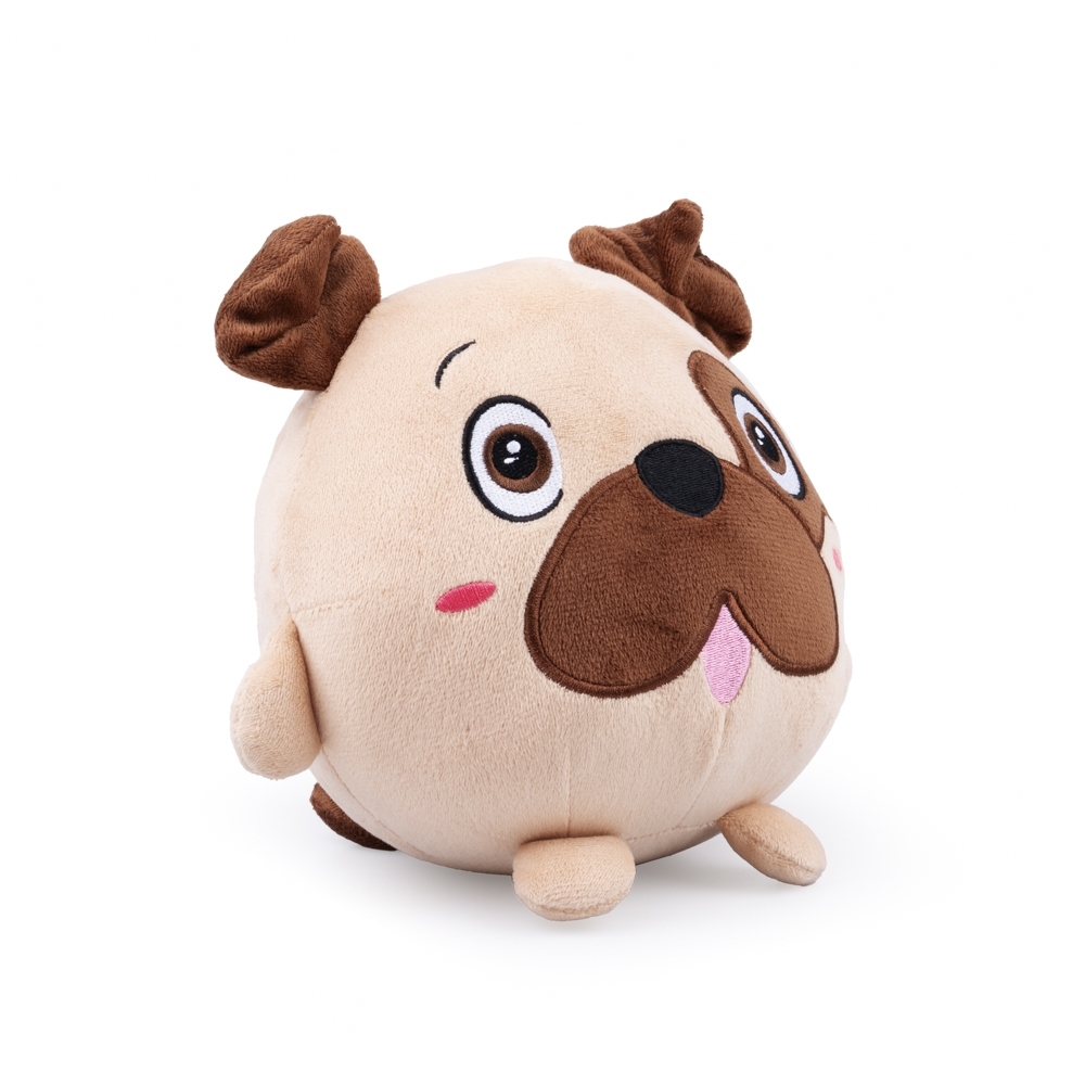 Skaczący wesołek potrafi rozbawić nawet ponuraka! Ten uroczy psiak to zabawna piłeczka, która po podrzuceniu lub rzuceniu jej na podłogę zaczyna podskakiwać, przemieszczając się. Czynności tej towarzyszą zabawne zwroty, dodatkowo aktywizujące maluszka, oraz wesołe melodie. W momentach bezczynności zabawka przechodzi w tryb nagrywania, powtarzając zmienionym głosem to, co usłyszy. Aby uruchomić zabawkę, należy odpiąć rzep, i nacisnąć żółty przycisk, znajdujący się na plastikowej piłce, wewnątrz zwierzaka. Piłeczkę tę można wyjąć, w celu wymiany baterii lub wyprania pluszowego zwierzaka.